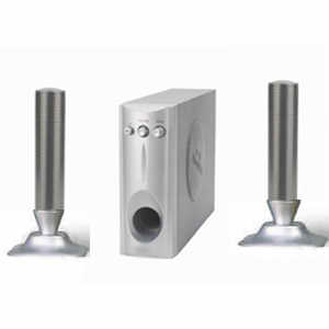 RMS: Subwoofer 18 W / Salellite 2 X 2 W Frequency Response:40Hz-20Hkz Drivers: 66mm Fullrange / 104mm Woofer Control Features: Power Switch / VolumeContro......